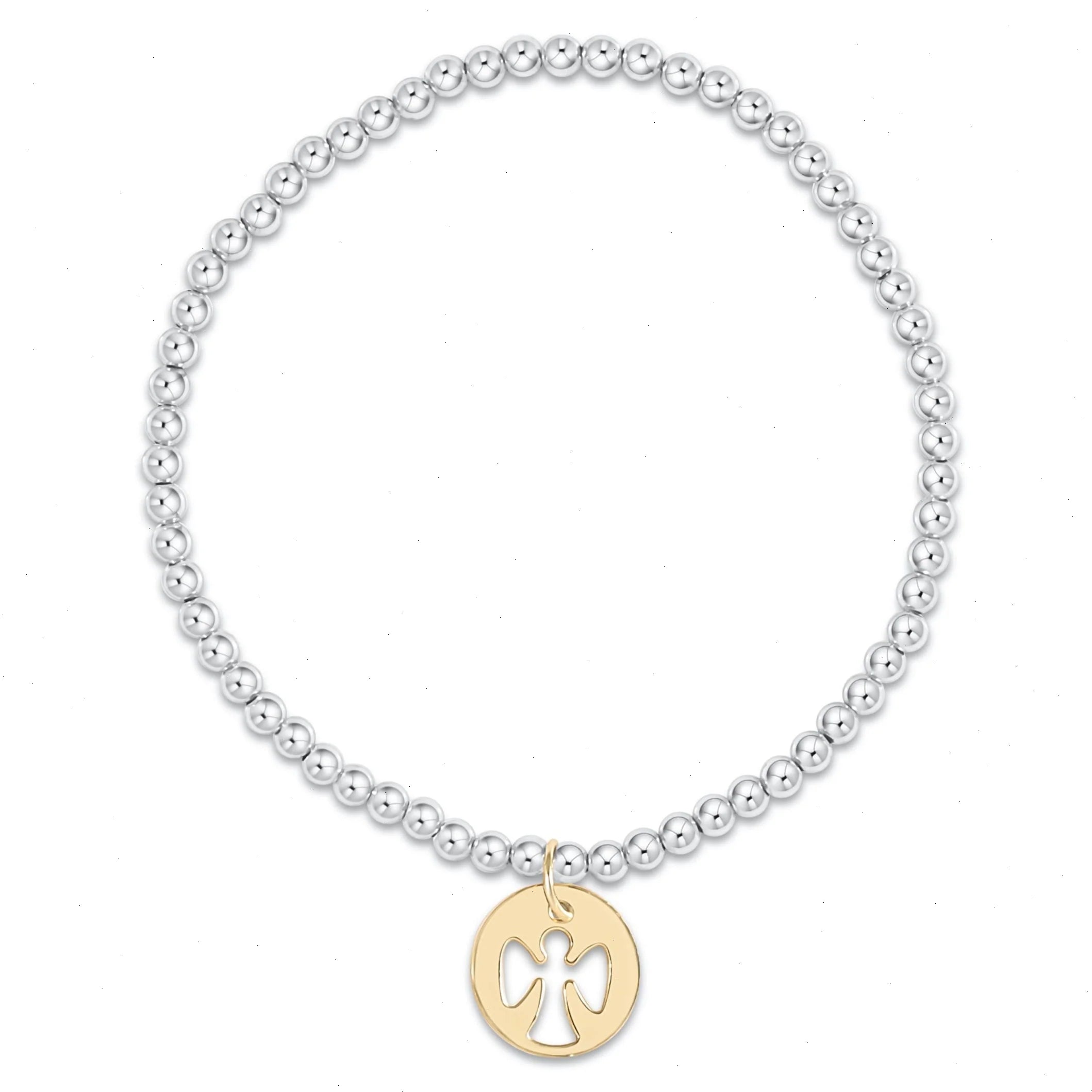 Classic Sterling Mixed Metal 3mm Bead Bracelet - Guardian Angel Gold Disc