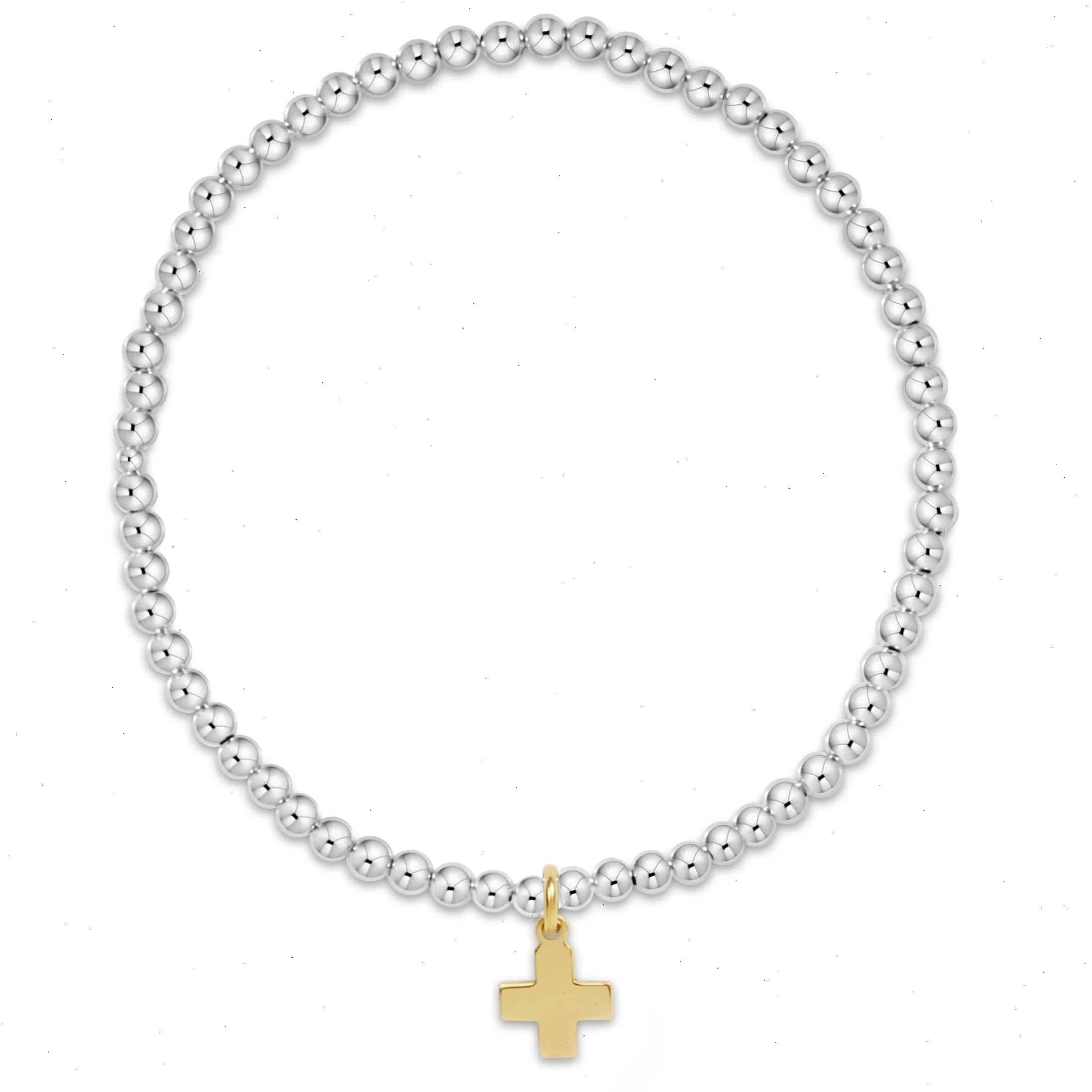 Classic Sterling Mixed Metal 3mm Bead Bracelet - Signature Cross Gold Charm